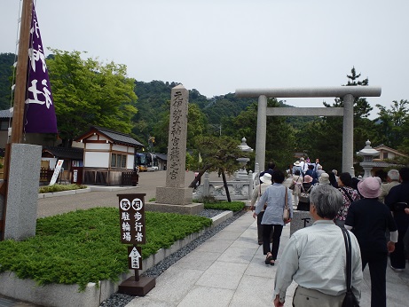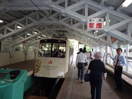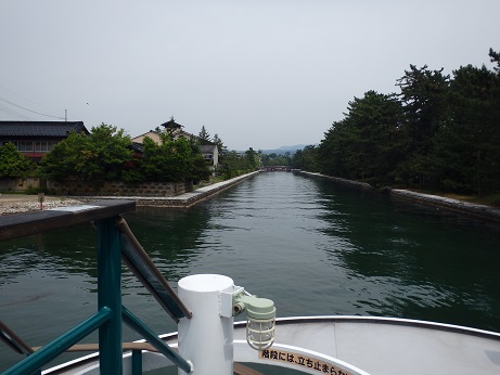 2日目は、早めの朝食をすませ、8:20に貸し切りバスで天橋立へ向かう。バスは亀岡ICから京都縦貫自動車道に入り、工事中のため園部ICで一端高速道路を出て、丹波ICで再び高速道路に戻った。橋立では貸切りの遊覧船に乗る予定で、道路を迂回したおかげで、約束の時間に間に合わない可能性があり、途中の休憩無しに港までバスは走り、予定より30分遅れの10:00に乗船場についた。