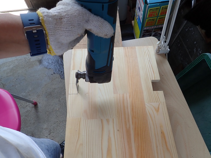 | マルチツール(TM51DZ、工具箱付) | マルチツールでコの字の奥を加工中 |