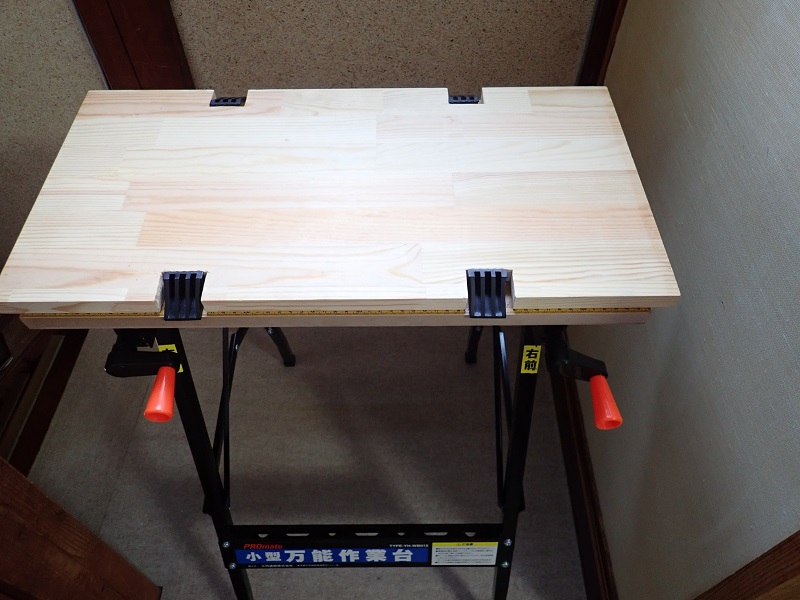 | 木材のコの字加工ができました | 加工した板を作業台に固定 |