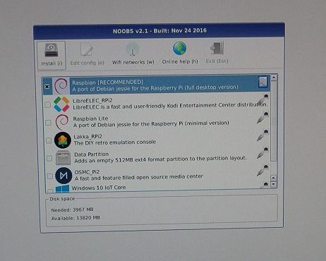 | NOOBSのダウンロードページ | ケーブルを繋いだラズパイ3 | インストールOSの選択画面 |