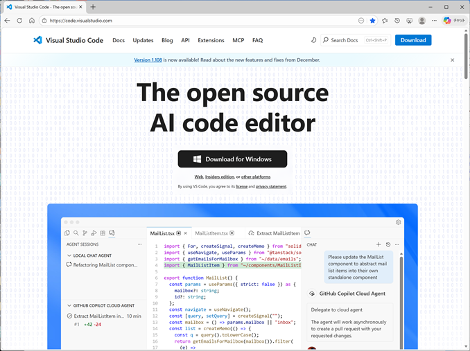 ![]() VSCodeのホームページ |