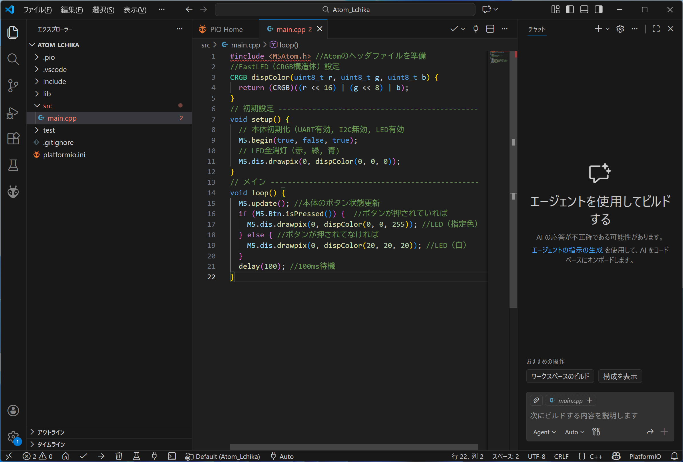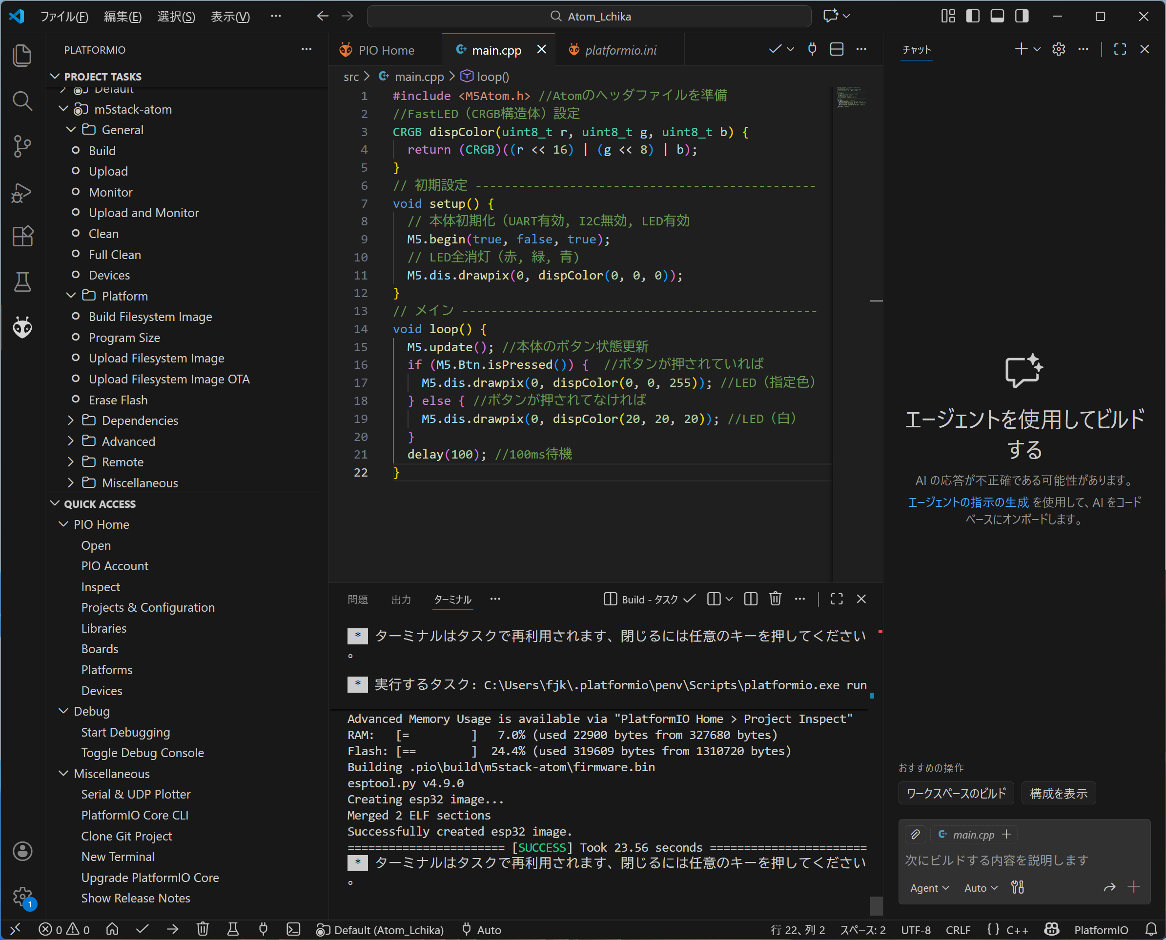 Platform.ini Atom_Liteの点灯テスト |