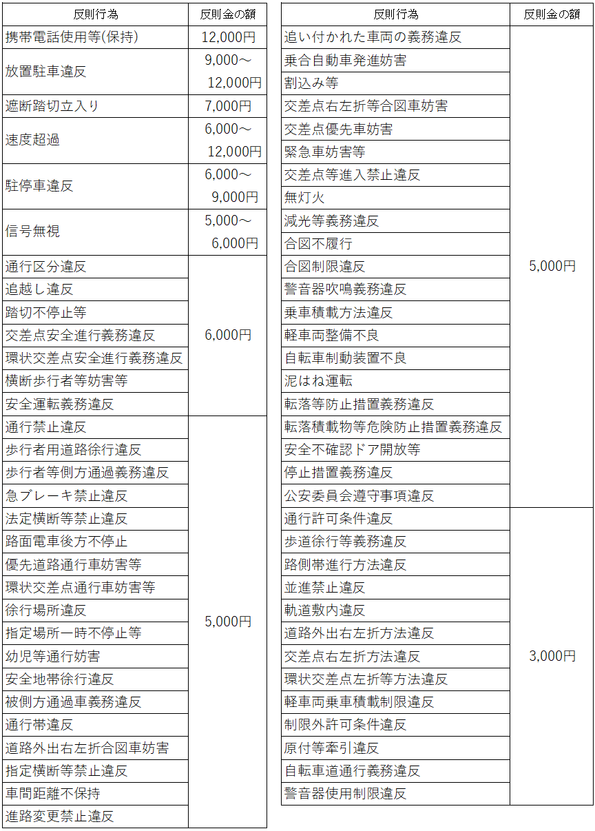 改正に伴い、特に「携帯電話使用等(保持)」に注意が必要で、携帯電話を使用していなくても、保持しているだけで、青切符の反則金(12,000円)となります。