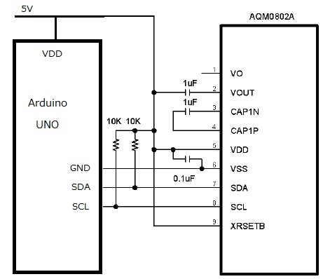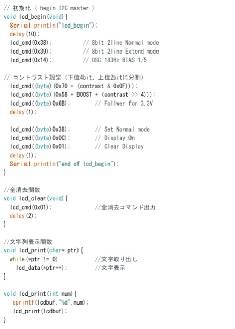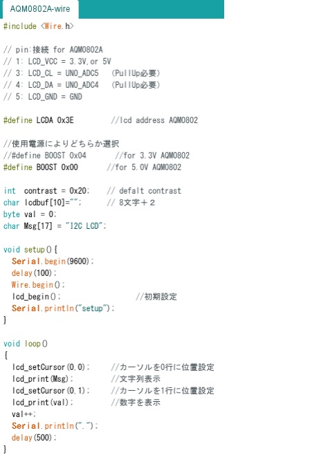 | I2CによるLCD表示スケッチ (aqm0802a.ino), (aqm0802a.zip) | ||
