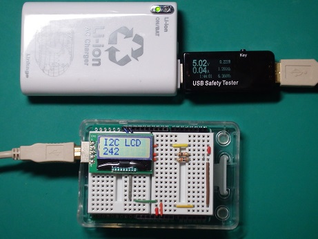 | USB電源供給能力チェッカー | USB電池供給Arduinoの電流は? |