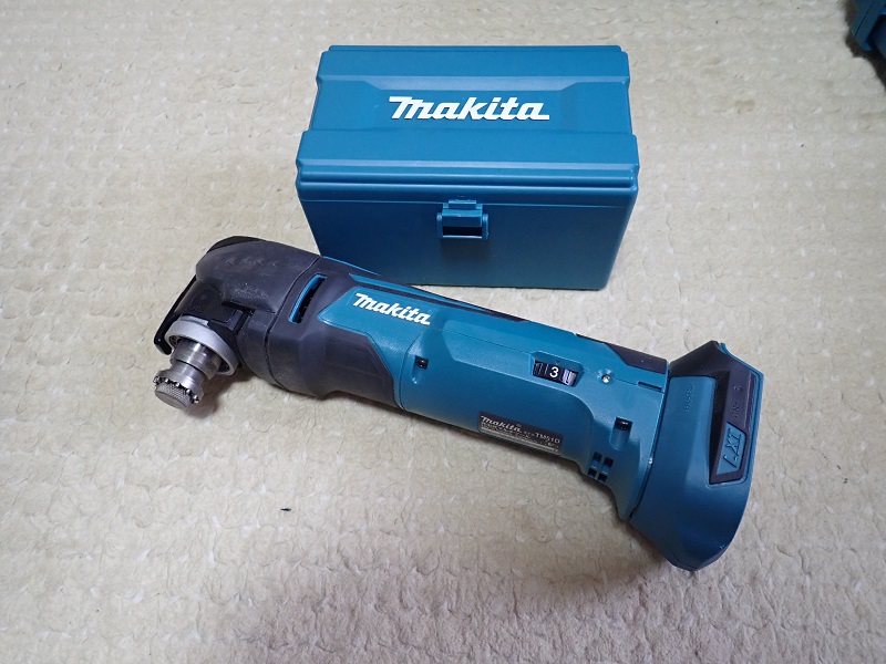 abc720で購入したMUR365Dに付属のバッテリーは他のマキタの電動工具にも利用できるので、「切断」「剥離」「研削」が一台でできる「マルチツールTM51DZ」(本体のみ)を購入した。TM51Dは18V動作だが、14.4V動作のTM41Dとは電圧と重さが0.1kg異なるだけでほとんど同じである。マルチツールはヘッドが左右に1.6°振動することで、切断や研削などの加工を行うため、マルノコやレシプロソーでなどにある跳ね返りがなく、角窓穴なども加工できる。
