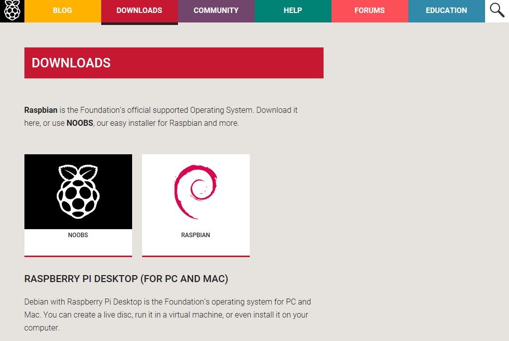 | NOOBSのダウンロードページ | ケーブルを繋いだラズパイ3 | インストールOSの選択画面 |