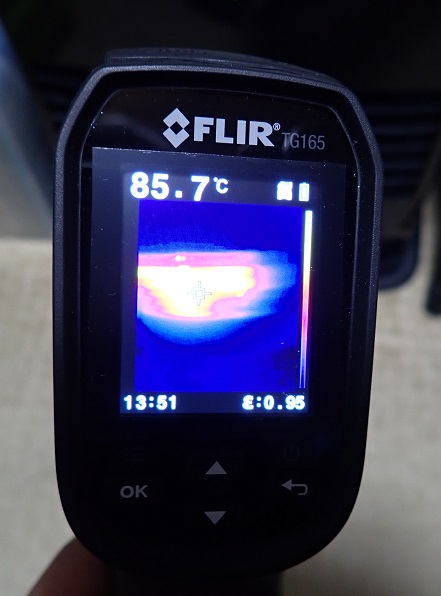 abc667で報告したDT8650はスポットのみの温度測定で、本当にどこの温度を測定しているのか不明である。そこで、温度分布が画像として得られるTG165を入手した。TG165は安価だが赤外線画素数80x60で、本当に細かい部分の測定は期待できないが、どこの温度が高いのか、そしていくらなのかが良くわかるようになった。なお、TG165の保管にはDIY売っていた市販の汎用ケースを利用した。