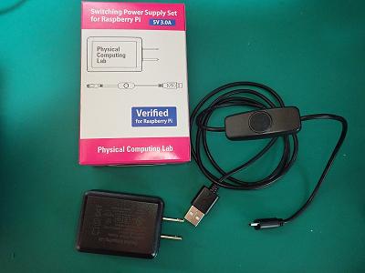 ラズパイ用USB出力ACアダプタ (5V、3.0A、SW付ケーブル) |