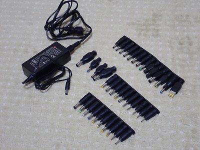 そこで、合うプラグが無いかネットので調べてみると、ACアダプタのプラグ形状には数十種類あることが判った。どれが合うかよく判らないので、アマゾンで38種類のプラグセット(aceyoon、1,298円)を入手したところ、その中にプラグが一致するものがあった。