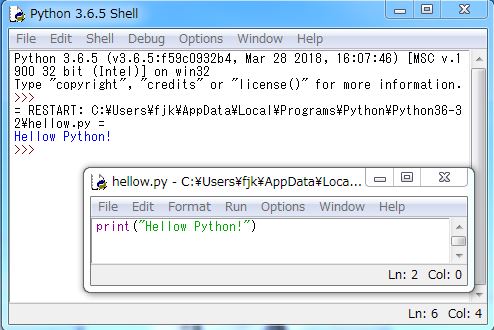 | $ python hellow.py | ・・・hellow.pyの実行 |