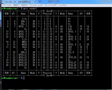 - $ gpio -g write 17 1 ・・high(3.3V)出力