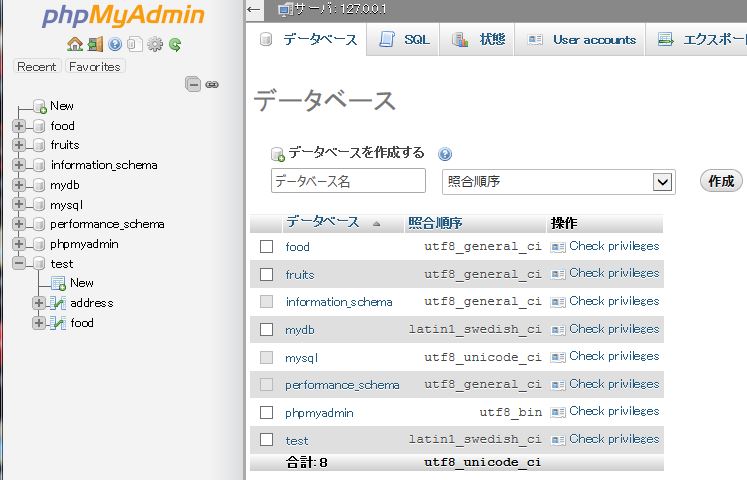 ※コマンドラインのほか、phpMyAdminでブラウザからもMySqlを操作することができる。