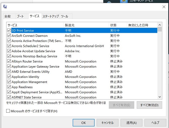 | 設定を選択すると再起動される | Msconfig起動画面 |