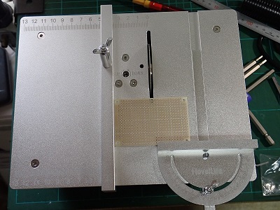 PCB(プリント基板)を綺麗に切断するため、w230-d180-h90mmとコンパクトなミニテーブルソー(NoveLife、13.900円)を購入した。同品は購入時期で仕様が異なるようで、入手したものは電源プラグは日本仕様の2P、刃の上下が可能(BOX内に刃を収納可)、回転速度は固定(Max10000rpm)。ガラスエポキシ基板切断用のダイヤモンド刃を含む3枚の刃が標準で付属。ガイドが両持2点固定なので基板を直角に切断でき、切断面も綺麗。刃高は最大20mm(材料厚は1/2、刃A)。なお、15.9-20mmの変換アダプターがあると使える刃が多くなる。刃の交換は、天板を外し、回転軸の穴にドライバーを差し込み、軸を固定して行うが、慣れるとこの方法が便利。集塵口には水道用25mmネジ付きエンビパイプがピッタリ合う。類似のPCBカッターであるK-111(HOZAN)はガイドが片持ち、合金刃は別売り。