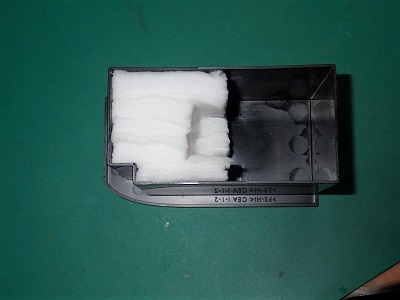 さて、吸収パッドのカウンタはリセットできたが、このままでは廃インクタンクは満タンで、インクが溢れる可能性がある。そこで、廃インクタンクの吸収材(パッド)を交換する必要がある。その手順は、