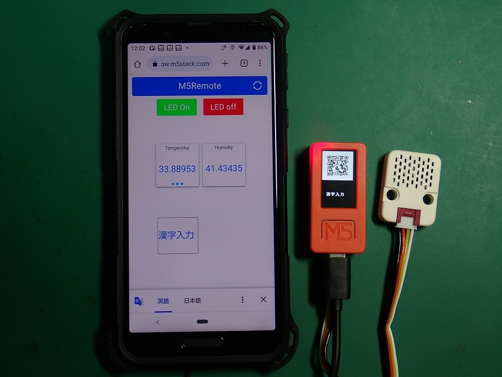 ネット接続パソコン画面で、離れたM5StickCPlusの測定データが確認できる |