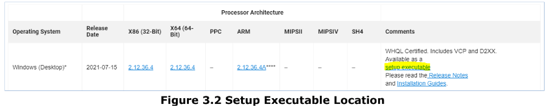 | Windows 10/11 VCPドライバーは、FTDI ウェブサイトから、下図のように、X64用またはsetup.exe として入手することができる。 |