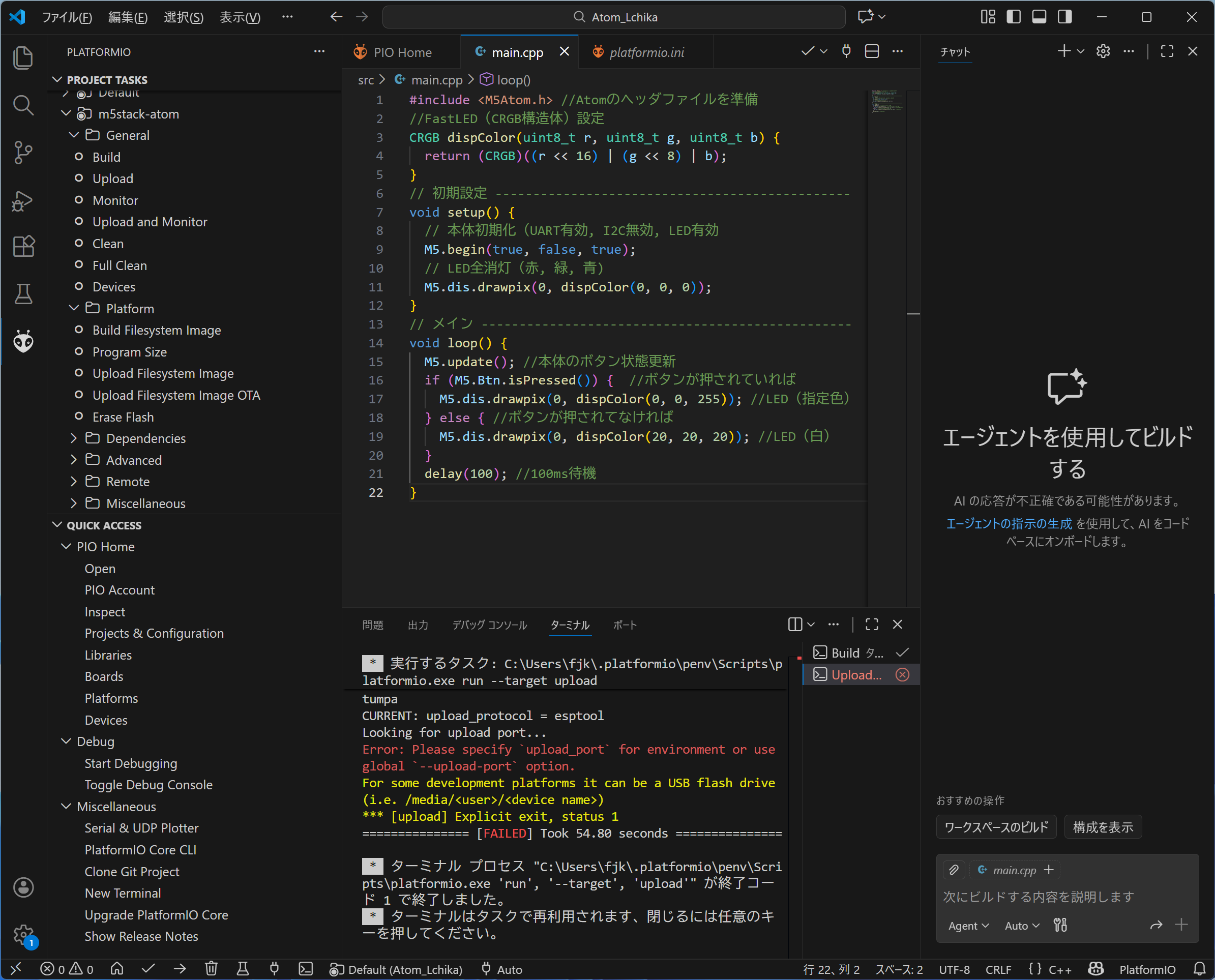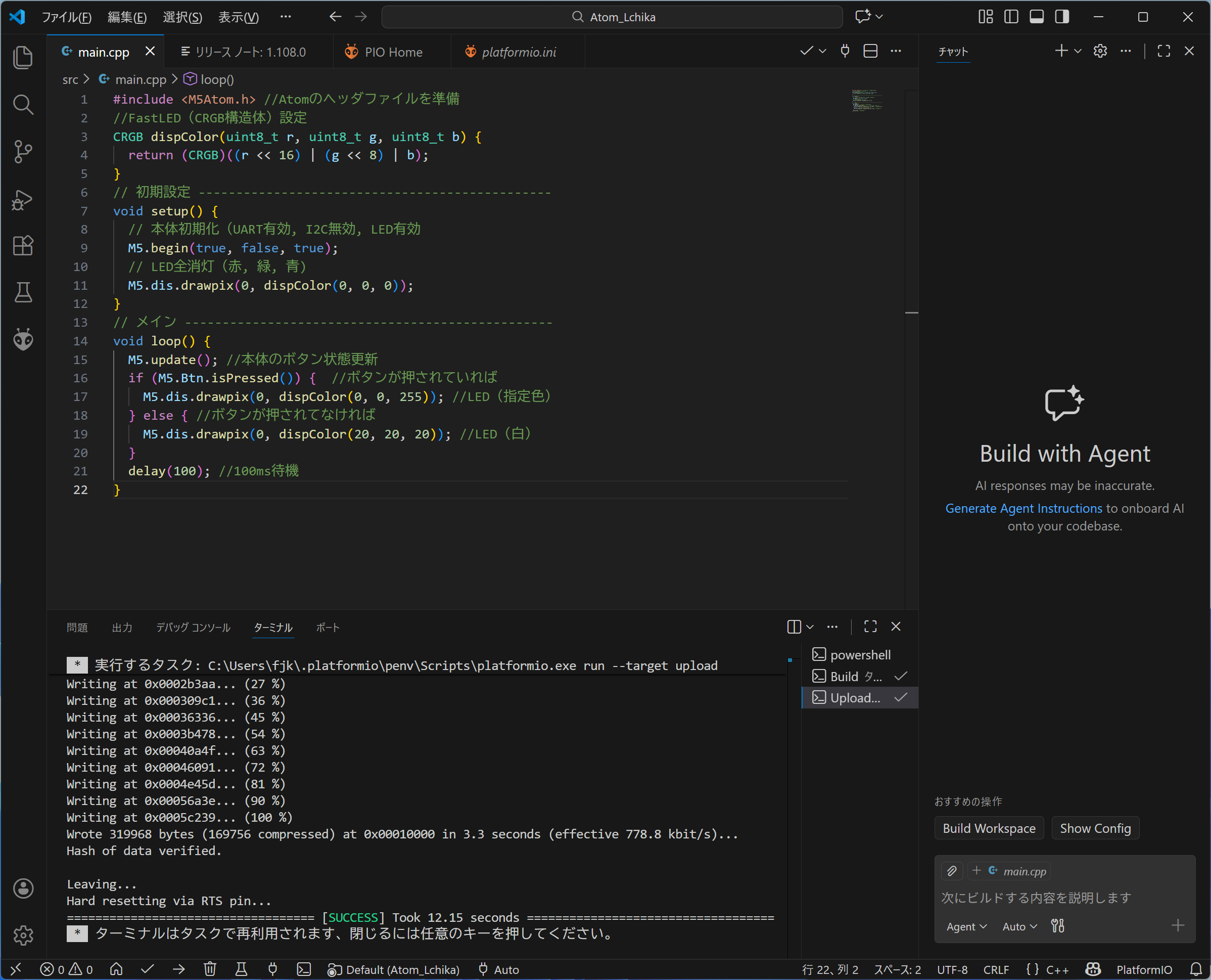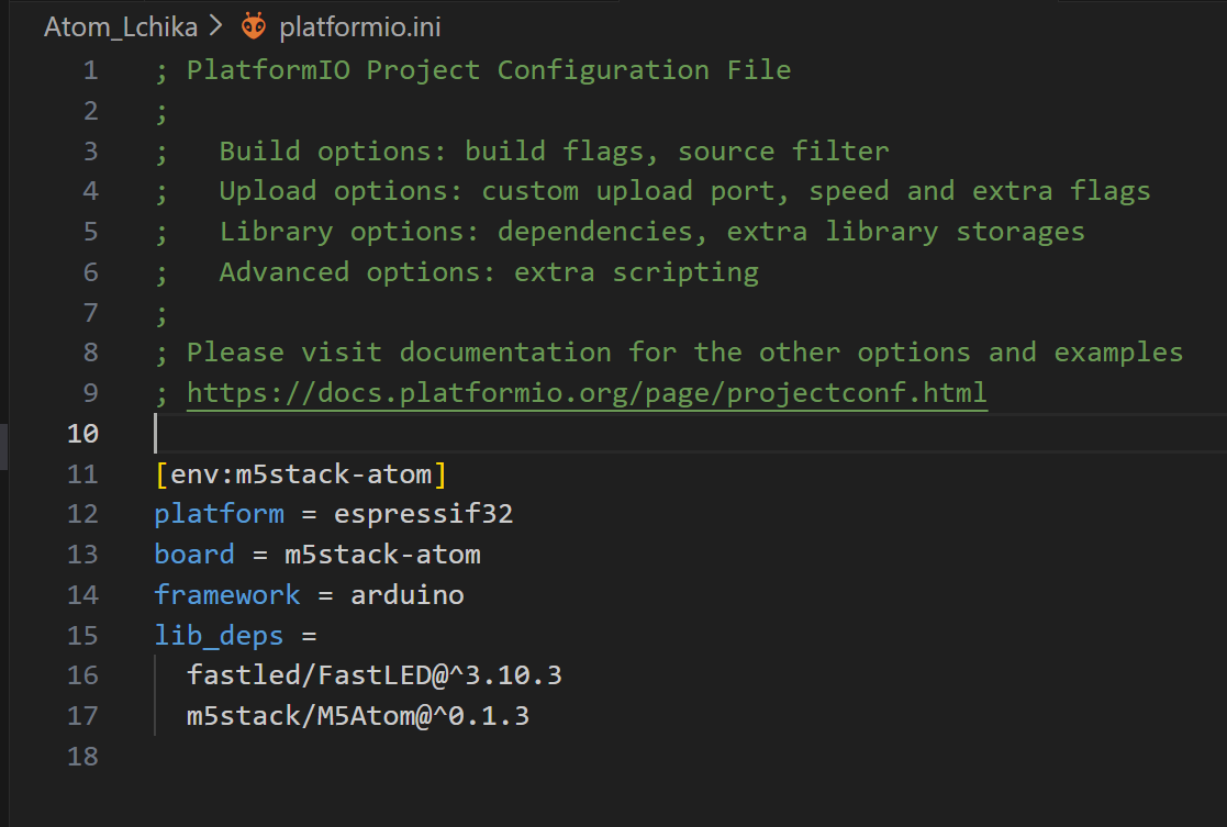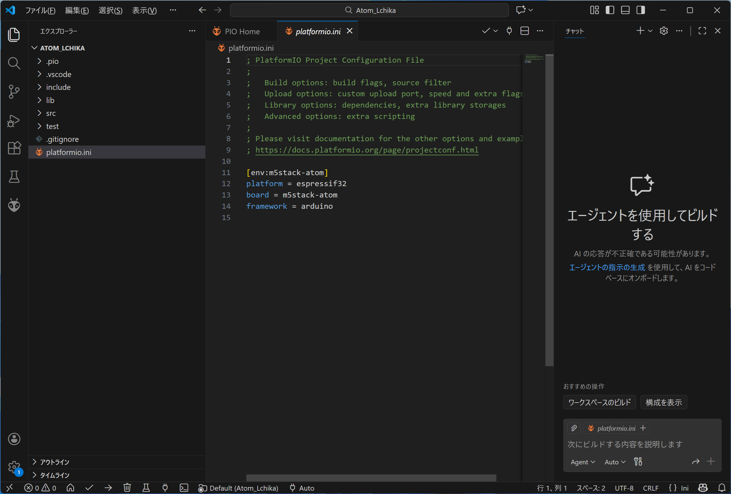 Platform.ini Atom_Liteの点灯テスト |