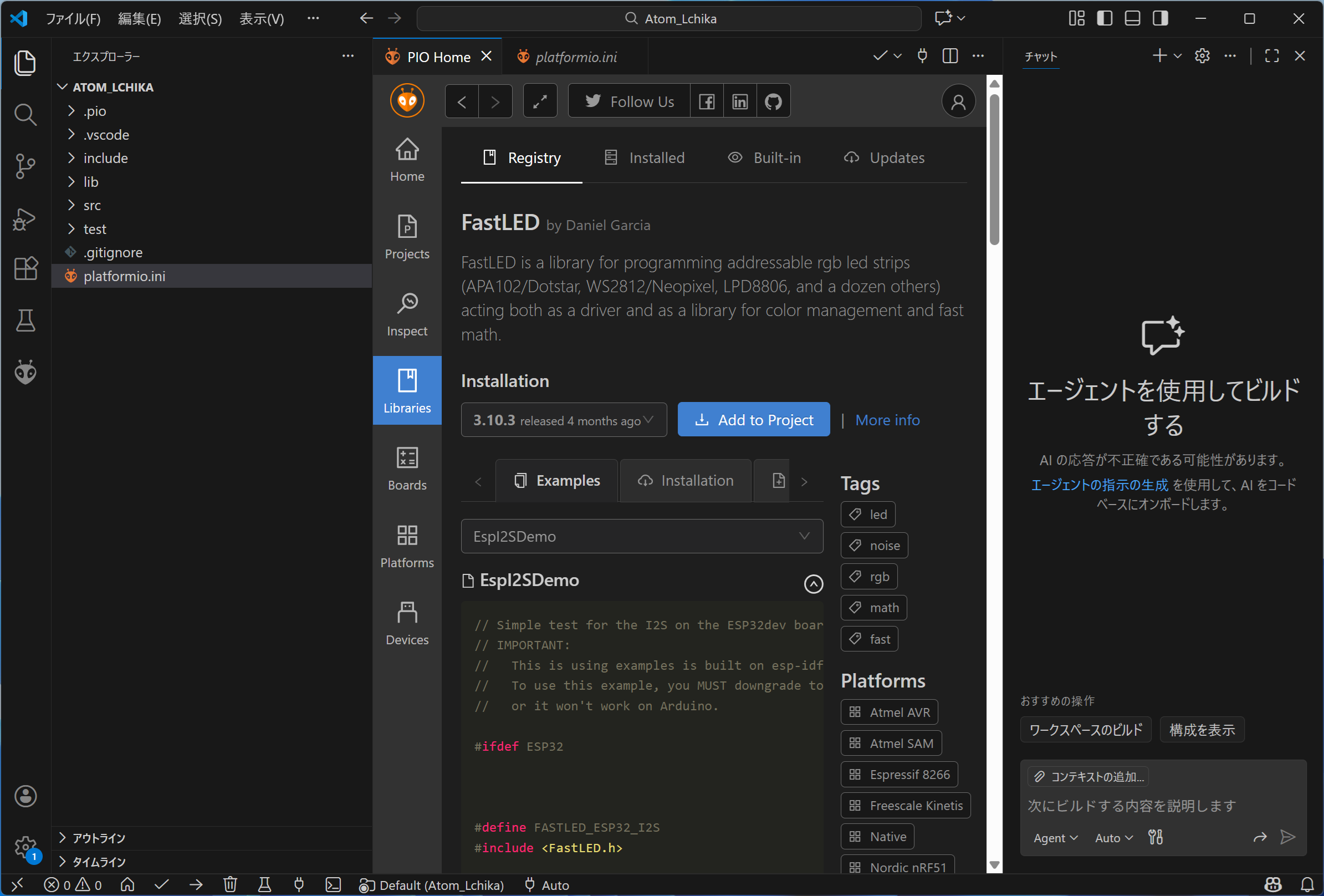 ![]() ライブラリでPlatformIOを追加 |