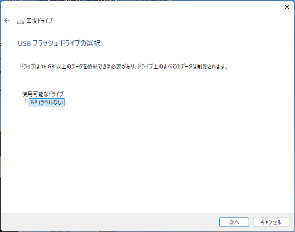 Windows10からWindows11にUpgradeしたマシンで、システムが起動しなくなったときなどに対応するため、「回復ドライブ」を作製した。Upgradeしたマシンで作製したドライブは下記のようにWindows11に復元する回復ドライブが作製されます。