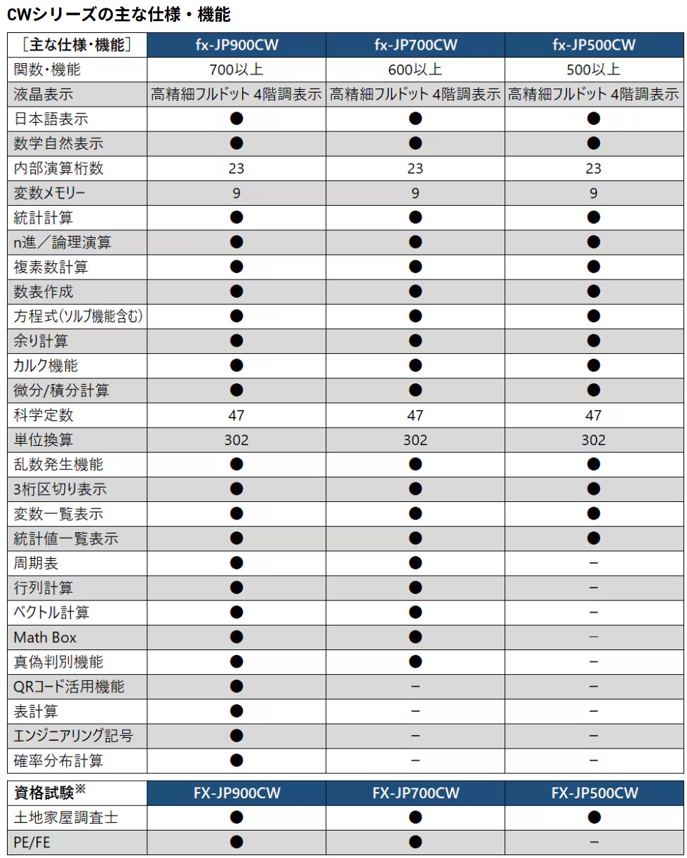 CLASSWiZシリーズはJP500/700/900と3機種があり、n進数の計算はどの機種でも可能で、数値の前に基数を付けて入力できるので、基数が異なる数値が混在していても簡単に計算できる。JP900CWは旧機種より、「OK」キーの採用や「数式通り入力」などユーザーインターフェース(UI)が大幅に変更され、さらにMathBoxや真偽判定機能が追加された。